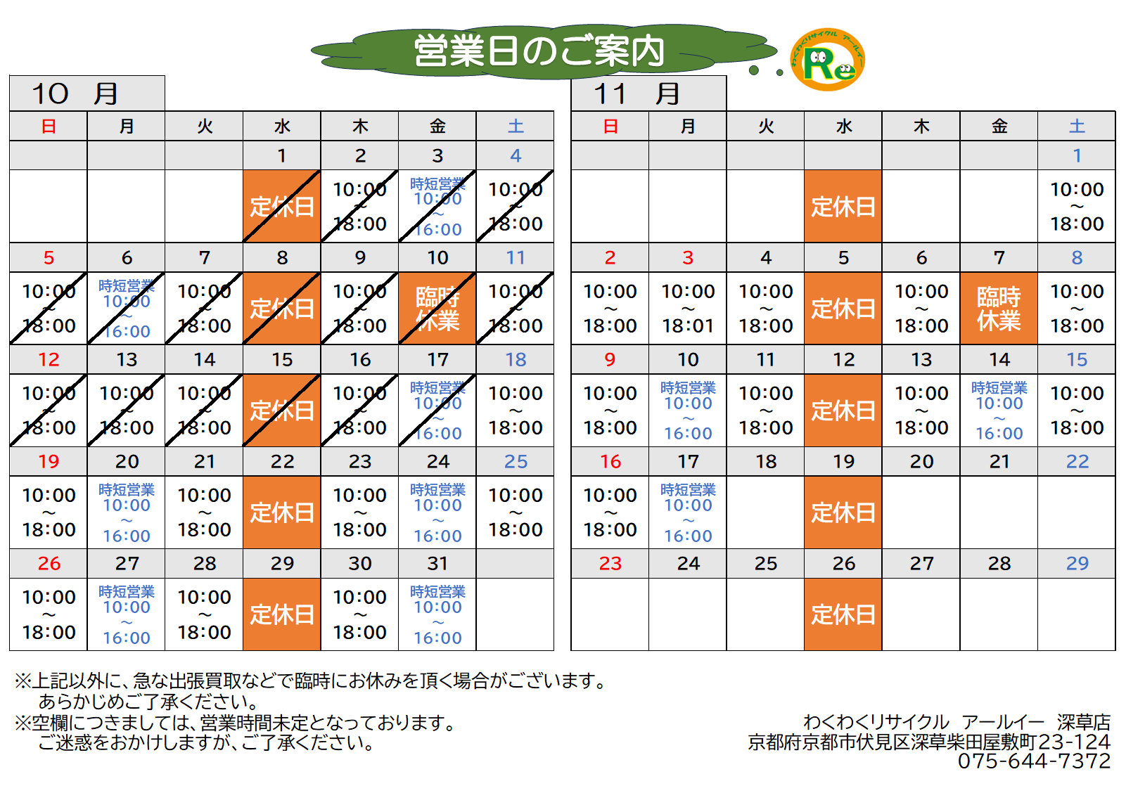 深草店・サテライトのほうは引き続き営業しておりますので、なにとぞよろしくお願いいたします。